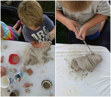 Clay station: Mold clay into fun shapes and containers. It is not self-drying clay but kiln clay so even after it dries it may be brittle depending on what is made. Bring a plastic bag for carrying it home since it may still be wet.