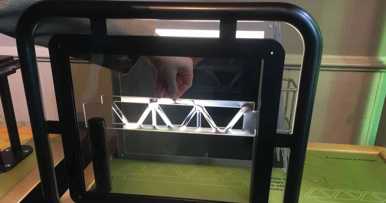 There are several building challenges – magnetic tiles, bridge building, and truss building out of K’Nex. I loved the stress analysis screen where you can interactively view the stress on a truss sample.